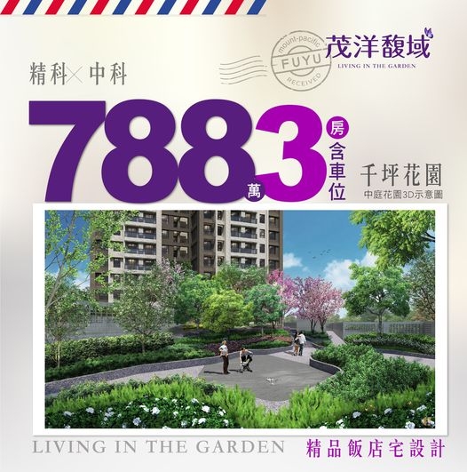 當幸福捎來一封信,機會稍縱即逝 千萬不要在未來某一天後悔了! 茂洋馥域 3房含車位 788萬 千坪花園 精科×中科 最美的盛放 超值入主,迎接可預見的 增值人生 精品的設計,綠覆的空間,內外兼備 都心的機能,純住的愜意,動靜皆宜 最好的選擇,成為你新富生活的起點 名家聯獻|一間傾心、成就一生所愛 茂洋馥域|全齡社區聚落 正式公開 立即預約:https://fu.know.house 禮賓專線:04-2635-3838 接待會館:沙田路.天仁街口(7-11旁)