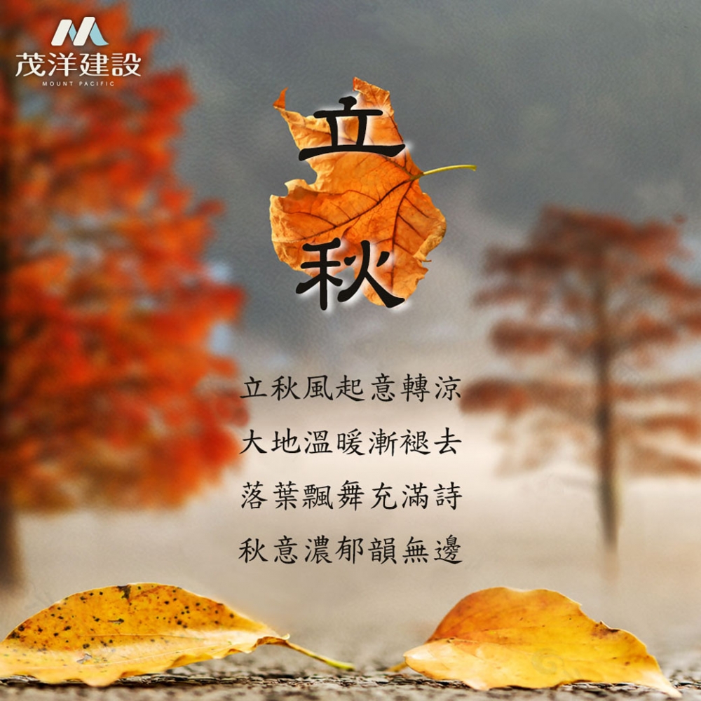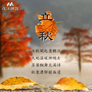 立秋是一個新的開始,適合進行搬遷和改變。不管是追求更好的生活條件還是迎接新的挑戰,搬遷都是人生中重要的時刻,對於購房者來說也是一個適合選擇入住新家的時機,天氣宜人,適合進行看房和安排搬遷。「茂洋建設」秉持著「美好建築,始終都在」的初心,持續在地深耕、回饋,以有口皆碑的優良品質,及有目共睹的溫暖服務,帶給中台灣居民最好的居住選擇。如有任何需要詢問的事項,歡迎點入「茂洋建設」的網站,進一步了解我們。