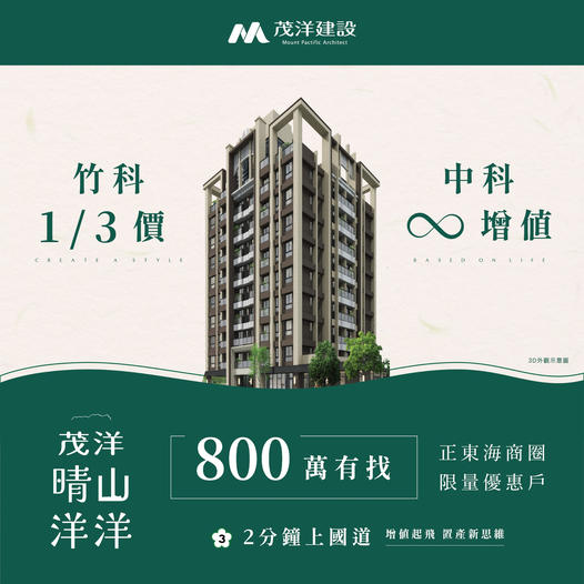 竹科三分之一價 總價八百萬有找