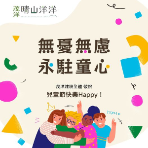 兒童節 其實是每個人的節日 誰說長大成人了,就不能保有童心? ▎兒時愛拼積木,堆高無數座積木塔的小男孩 長大學了技術,成為首屈一指的建築師 ▎兒時愛隨意畫畫,讓母親氣呼呼的小女孩 長大了依舊執著畫筆,讓她設計的裝潢聞名業界 微不足道的事,或許將成為夢想的種子 實現童年夢想,永遠不會太晚 獻給每位保有童心的您 茂洋建設全體 敬祝:活力滿滿 兒童節快樂